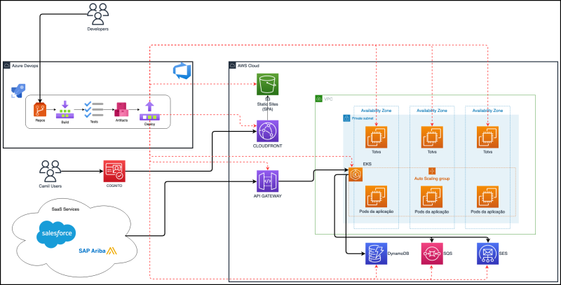 Esse processo de projetos foi aliado a metodologias ágeis já utilizadas em outras frentes pela Camil, garantindo uma melhor governança de alterações pois todo o código está centralizado e todas as alterações são registradas no git, facilitando o processo de rollback em caso de falhas, diminuindo o MTTR (Mean time to repair) nesses casos de horas/dias para minutos.